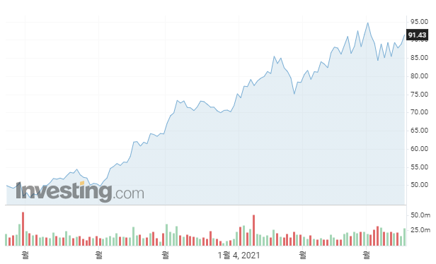 - 52주 최고가 : $95.75