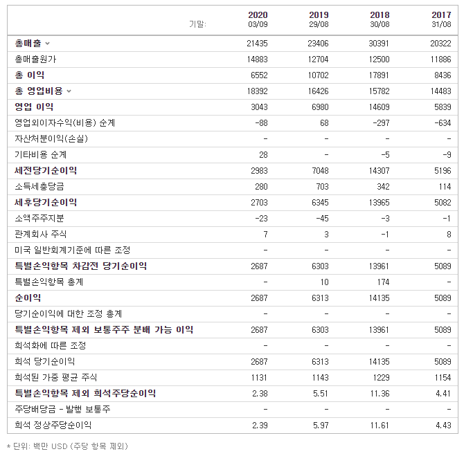 - 결산월 : 2020년 09월 03일